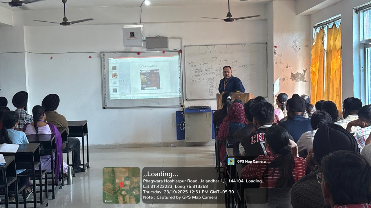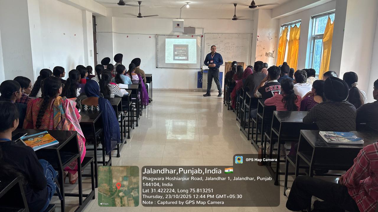 The Department of Computer Science and Applications, Sant Baba Bhag Singh University, organized an awareness program titled “Cyber Jagrit Bharat” on 23rd October 2025 in connection with the National Cyber Security Awareness Month. The event took place in Block–7 of the university and was attended by over 150 students, along with faculty members and staff from the department.