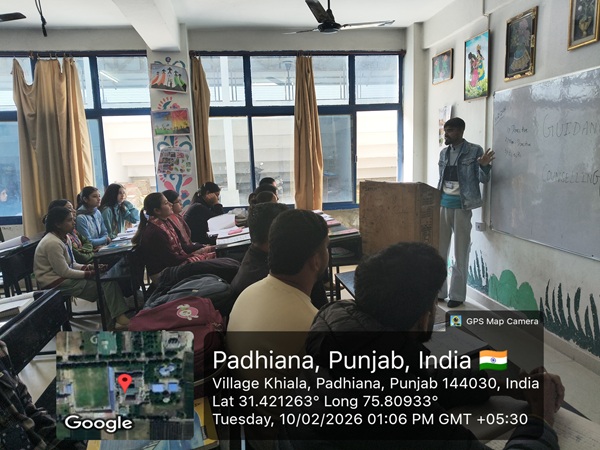 A one-hour workshop on “Generative AI – Tools, Trends & Career Opportunities” was successfully conducted as an interactive session with live Under the aegis of IQAC, Conduct a seminar on (10th Feb 2026) "Guidance and Counselling" related to Wellness Interventions and Mental Health activities Under the Guidance of Worthy Vice Chancellor Dr. Vijay Dhir. This Session was organized by Dr. Harpreet kaur from the Department of Education. Total 25 Students from B.Ed stream participated in this activity. In this Session, each and every student participated in this session. The purpose of this seminar is how to manage stress, Academic and emotional challenges, Career related issues and other life challenges. students also delivered lectures on guidance related topics. Overall, The Session was productive and fruitful, resulting in positive outcomes and valuable insights.