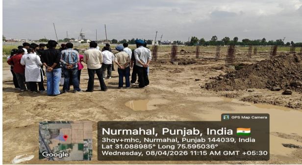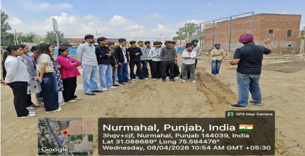 Industrial visits are an essential part of engineering education, especially in the field of Civil Engineering, where practical exposure plays a crucial role in understanding theoretical concepts. The Department of Civil Engineering organized an one-day industrial visit to Nurmahal City Centre under NIRMAAN CLUB for B. Tech Civil Engineering students to provide them with firsthand knowledge of construction practices and site operations. There a colony is being under construction in three phases; Commercial Shops, shopping malls and Residential Buildings.