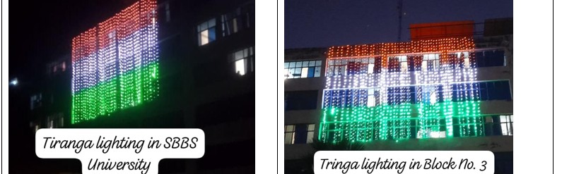 The university celebrated the 78th Independence Day with great enthusiasm and patriotic fervor. The occasion was marked by a spectacular lighting display that transformed the campus, symbolizing national pride and unity. The main highlight was the Tiranga-themed lighting on the prominent building of Sant Baba Bhag Singh University, which was beautifully illuminated with tricolor lights representing the Indian flag. This special lighting arrangement was carried out by the Department of Agriculture, under the University Institute of Agriculture, as part of the celebrations. The theme for this year's celebration was “Har Ghar Tiranga,” encouraging every individual and household to proudly hoist the national flag and express their patriotism. The event aimed to instill a sense of national pride among students, faculty, staff, and visitors. It also emphasized the importance of unity in diversity and the collective efforts required to uphold the values of independence and patriotism. The lighting was complemented by cultural programs, national anthems, and speeches that reflected the spirit of independence. Overall, the celebration was a grand success, fostering a sense of community and patriotism among all attendees.