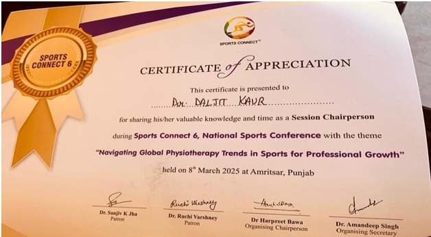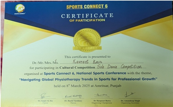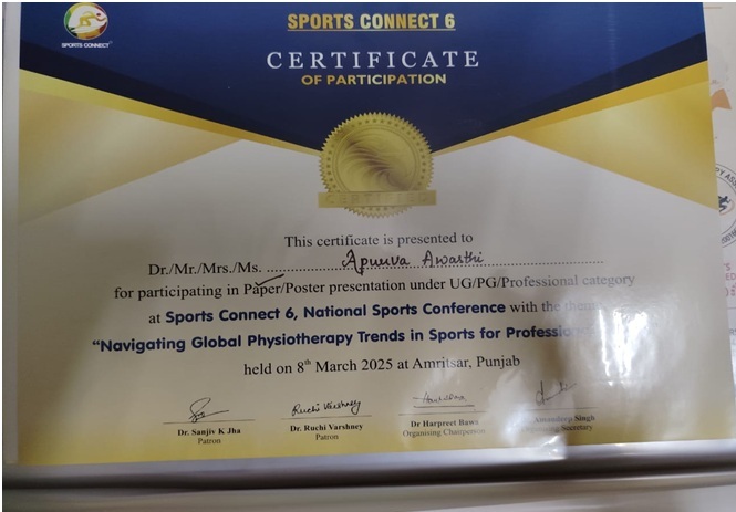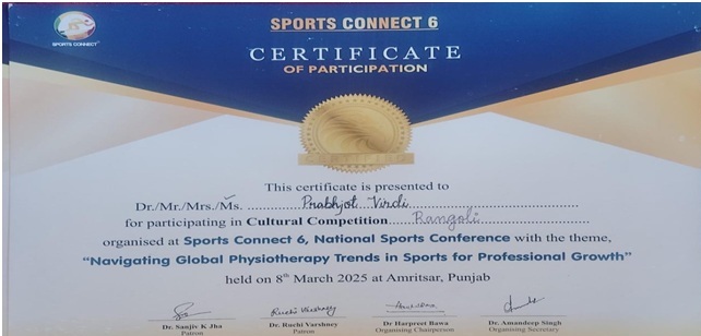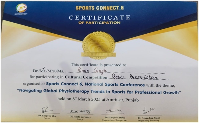 The Discipline of Physiotherapy extends heartfelt gratitude to the Honourable Chancellor, Sant Baba Manmohan Singh Ji, the Worthy Vice Chancellor, Dr. Dharmjit Singh Parmar, the Registrar, and the Dean Academics of Sant Baba Bhag Singh University for their permissions, encouragement, and continuous support in enabling student participation at national platforms.
