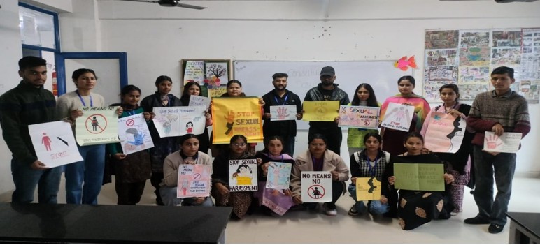 Internal Complaints Committee organized a Poster Making Activity on the theme of Prevention of Sexual Harassment Against Women with the objective of fostering creativity, visual expression and social awareness among students. The event was organized under the esteemed guidance of Dr. Aneet Kumar, Dean UIE and Dr. Mandeep Singh, Dy. Dean UIE. Participants from various departments prepared posters on various significant sub-themes, including women safety, sexual harassment, gender equality and other community-related concerns. Throughout the event, faculty members provided support and supervision, ensuring a productive and enriching learning environment. Students demonstrated commendable creativity, responsibility and sensitivity while presenting their posters. The event concluded with brief presentations by participants, where-in they explained the concepts and messages depicted in their artwork. Over all the Poster Making Activity served as a constructive educational experience, promoting both creative skill and social consciousness among students.