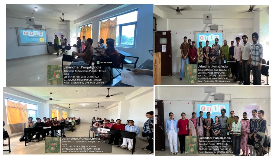 An Inter Departmental Quiz Competition was organized on 30th July 2025 at Sant Baba Bhag Singh University, Khiala, Jalandhar. The event was held in Room No. 304, Block 7 and witnessed enthusiastic participation from students of various departments.