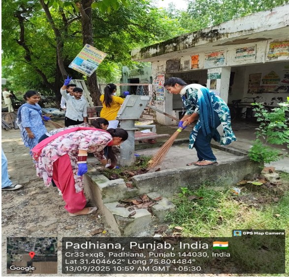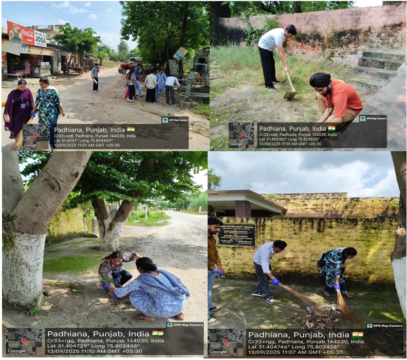 Under the aegis of IQAC and Swachh Bharat Mission, the Department of Life Sciences and Allied Health Sciences organized an extension activity: Cleanliness Drive in SBBSU adoptive village Padhiana, Jalandhar. A total of 30 students participated enthusiastically under the leadership of Ms. Pooja and Mr. Vishal Vasudeva, Assistant Professor in the Department of LS & AHS at SBBSU.The objective of the activity was to raise awareness about cleanliness, sanitation, and proper waste management practices among the villagers. The villagers were guided on various methods for household waste disposal. The information on these methods was shared through posters and direct communication with villagers. Following the awareness session, the students actively participated in cleaning the village surroundings, including streets and common areas. They also guided the villagers to keep their waste segregated as biodegradable waste and non-biodegradable waste into separate bins.The event concluded with an interactive session between students, teachers, and villagers to reinforce the importance of cleanliness for a healthy and sustainable future.Overall, the drive was a successful step towards realizing the vision of the Swachh Bharat Mission and promoting community-driven sanitation initiatives. It enhances the awareness among villagers about household waste disposal and instilled the sense of social responsibility among the students through their active participation.