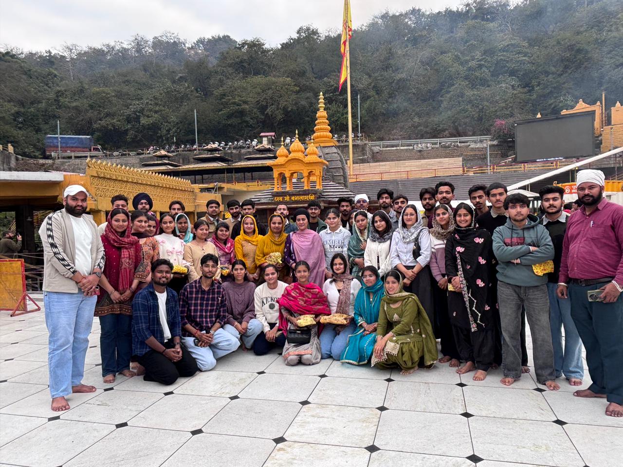 Upon reaching Mata Baglamukhi Temple, the students and faculty members offered prayers to Goddess Baglamukhi and sought her divine blessings. The temple, known for its strong spiritual aura and religious importance, provided a peaceful and sacred environment for all devotees.