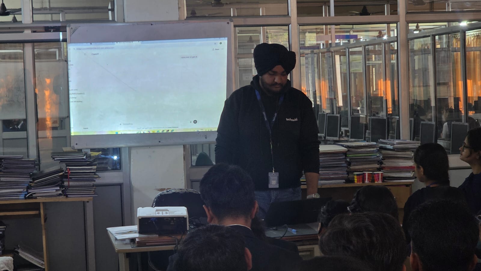 A one-hour workshop on “Generative AI – Tools, Trends & Career Opportunities” was successfully conducted by Techcadd Pvt. Ltd. , Mohali, Punjab as an interactive session with live demonstrations. The session was delivered by the resource person Ms. Asmita Sehgal and Eakumpreet Singh and aimed to create awareness among students about the rapidly evolving field of Generative Artificial Intelligence and its growing impact across industries.