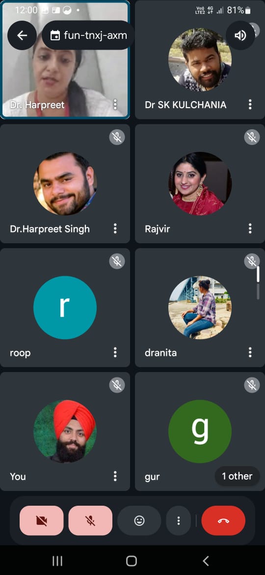 Under the aegis of IQAC, Conduct a session on "PERSONALITY" related to Wellness Interventions and Mental Health activities Under the Guidance of Worthy Vice Chancellor Prof. Dr. Dharmjit Singh Parmar, Respected Dean Dr. Aneet Kumar and Respected Dean Academics Dr. Vijay Dhir. This Lecture was organized by Dr. Harpreet kaur from the Department of Education through (Google Meet) online mode on 11 August 2025. 9 Students from B.ed and M.ed streams and 8 Faculty members participated in this activity. Overall, the Session involves self-awareness, self-concept and self-esteem that deals to improve our body language and interpersonal skills.
