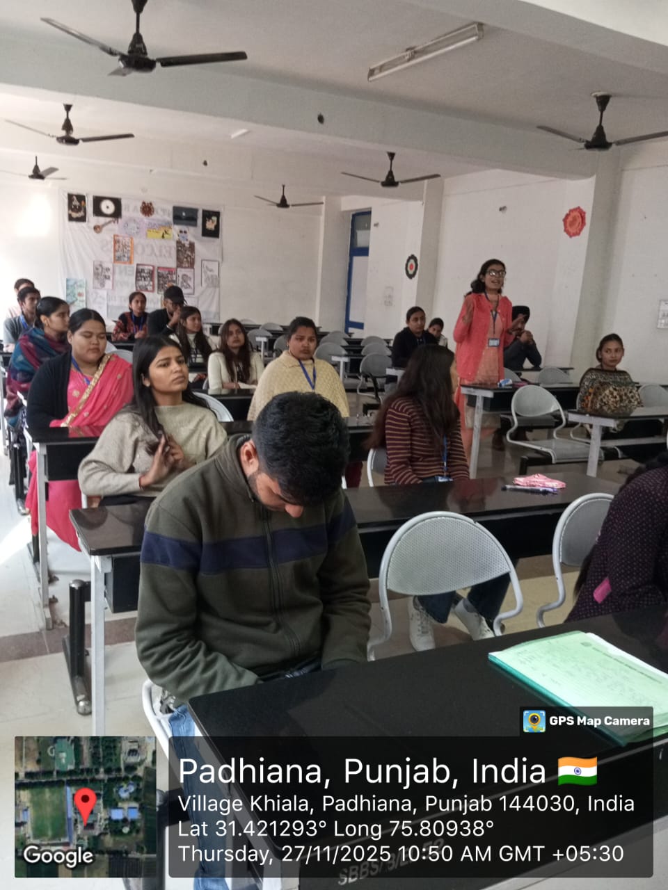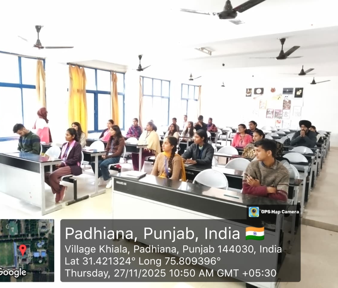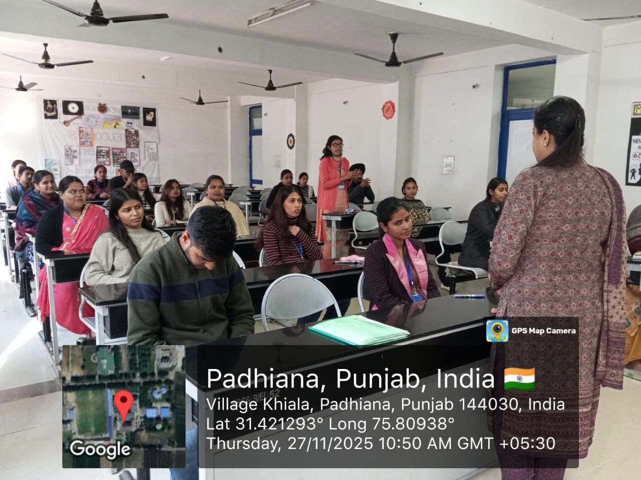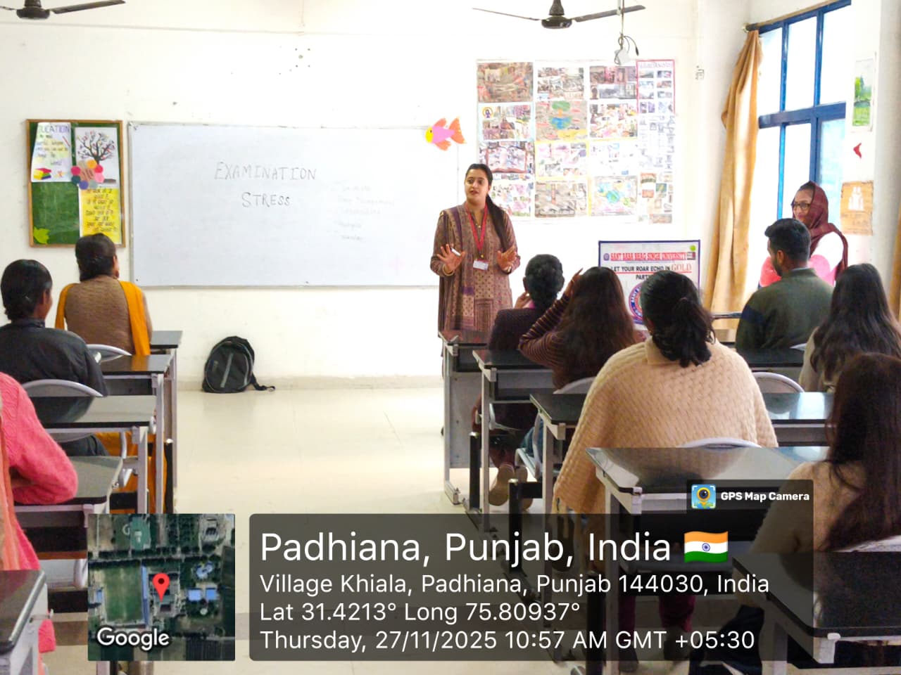Under the aegis of IQAC, Conduct a Lecture on (30th Nov 2025) "EXAMINATION STRESS" related to Wellness Interventions and Mental Health activities Under the Guidance of Worthy Vice Chancellor Prof. Dr. Dharmjit Singh Parmar, Respected Dean Dr. Aneet Kumar and Respected Dean Academics Dr. Vijay Dhir. This Lecture was organized by Dr. Harpreet kaur from the Department of Education. 23 Students from B.ed stream participated in this activity. This Lecture involves how to reduce anxiety and stress during exam days? What are the causes that affect a student's academic goals? , and why time Management is important for students? Overall, the Lecture was fruitful and effective.